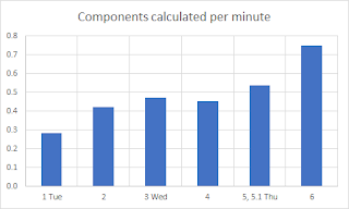 Calculating that Riemann tensor, which is a relatively easy one, took 9 hours 45 minutes over three days and six sittings. I got faster as I went along, notwithstanding long lunches preceded by a refreshing dry martini.